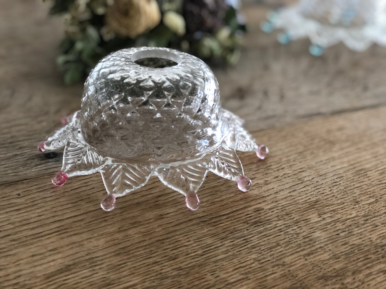ぽっりとしたガラスには、葉と水玉を模した様に縁取りされとても可愛らしく、機械による大量生産では出せない、本物の味わい、あたたかみを感じます。