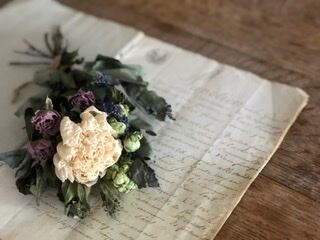 芍薬、薔薇、ラベンダー 、ミントのタッジーマッジーフォトです