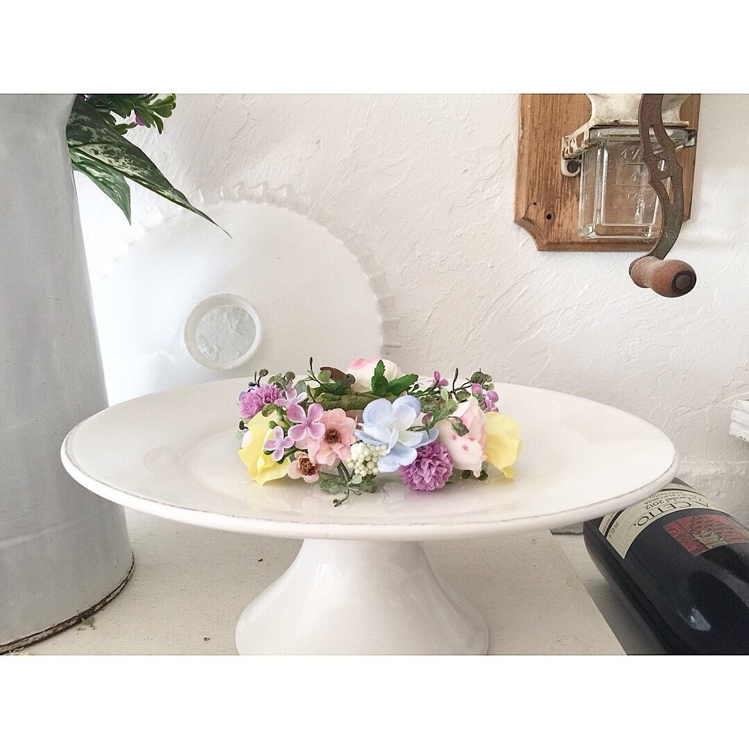 バラやスイートピーなど、パステルカラーのお花を繋ぎました
